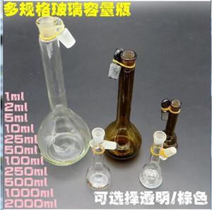 容量瓶,是一种细颈梨形平底的容量器,带有磨口玻塞,颈上有标线,表示在所指温度下液体凹液面与容量瓶颈部的标线相切时,溶液体积恰好与瓶上标注的体积相等。容量瓶上标有:温度、容量、刻度线。 |