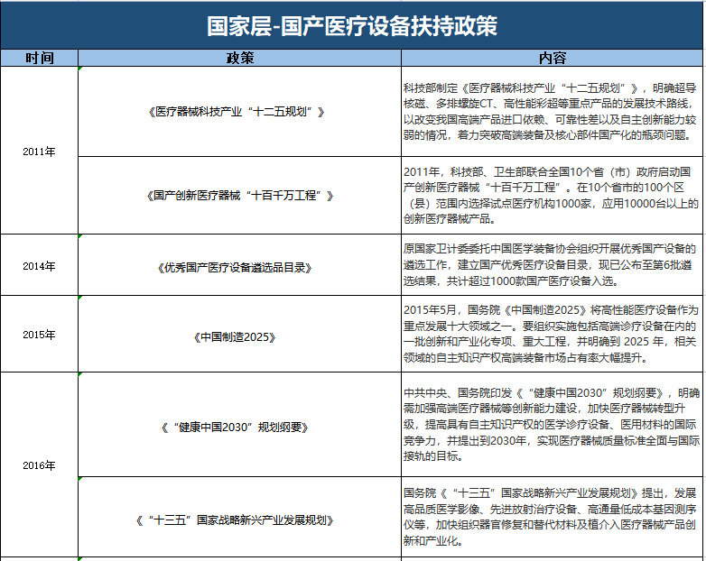 对此相关业内人士表示,本次采购甚至不排除后续会对国产设备的采购比例有更细节的指导要求。且这已不是国家首次大力推进医疗新基建建设,并支持国产医疗设备。