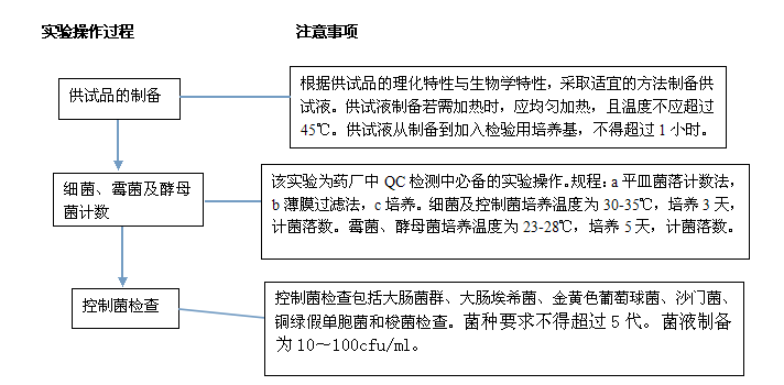 本检测法中细菌及控制菌培养温度为30-35℃;霉菌、酵母菌培养温度为23-28℃。供试液的制备,供试液加热温度不得超过45℃,制备过程不得超过1小时。
