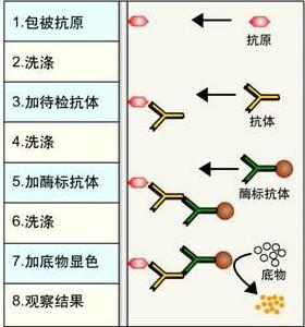 用去离子水将洗涤液稀释到1倍(用到移液器);将不同浓度标准品(100ul/孔)加入相应空中(96孔板、移液器),对于血清先加入50ul样本分析缓冲液后加50ul血清,若稀释量大,就将样本与样本分析缓冲液等量加入,不足部分用标准品稀释液补充至100ul,用封板胶纸封住反应孔,室温孵育120min(漩涡振荡器、恒温箱);`用1倍洗涤液洗板5次,且最后一次至厚吸水纸上拍干;加入生物素化抗体工作液(100ul/孔)。用封板胶纸封住反应孔,室温孵育60min;洗板5次,且最后一次至厚吸水纸上拍干(多孔道手动移液器);加入酶结合物工作液(100ul/孔)。用封板胶纸封住反应孔,避光室温孵育20min;洗板5次,且最后一次置厚吸水纸上拍干;加入显色剂TMB100ul孔,避光室温孵育20min,加入终止液50ul/孔,混匀后即可测量OD450值(电脑、酶标仪)