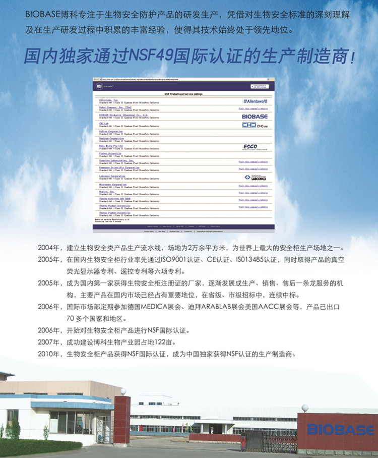 除了了解安全柜各项性能指标,最好最快最方便鉴别安全柜安全性能的方法是了解您购买的生物安全柜是否获得过以下几项主要的国际安全柜认证: NSF49 (美国生物安全柜标准-二级生物安全柜)、EN12469 (欧洲生物安全柜统一标准) 等。
