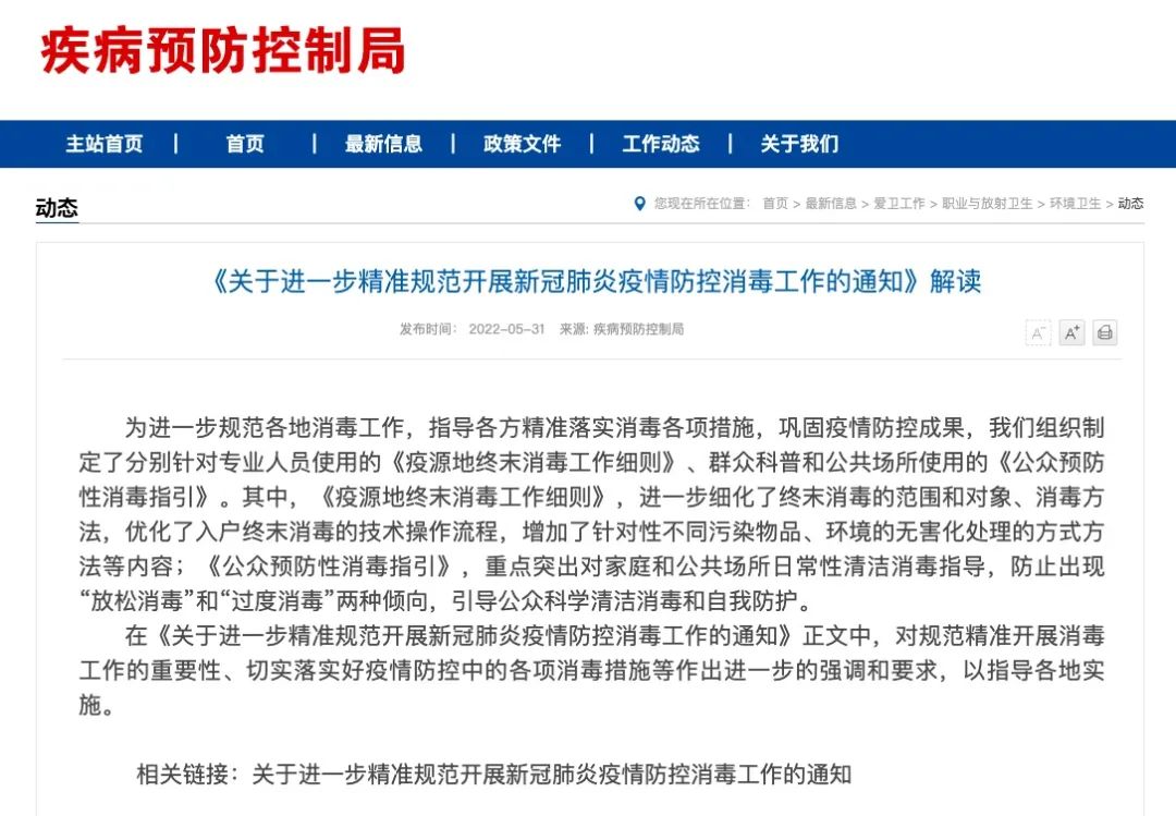 2022 年 5 月 31 日,国家卫健委发布《关于进一步精准规范开展新冠肺炎疫情防控消毒工作的通知》,制定了分别针对专业人员使用的《疫源地终末消毒工作细则》、群众科普和公共场所使用的《公众预防性消毒指引》。其中,《疫源地终末消毒工作细则》,优化了入户终末消毒的技…