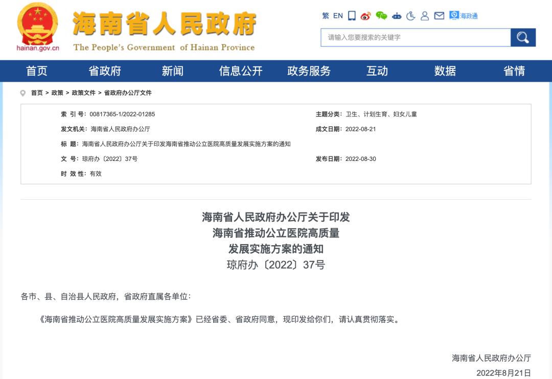 前不久,海南省人民政府办公厅发布《公立医院高质量发展实施方案》,其中提出了取消公立医院行政编制,推进公立医院去行政化改革,以及逐步取消三级公立医院普通门诊,严控三级公立医院数量和规模等举措。《方案》明确:推动省市优质医疗资源下沉。探索建立“省属县用”工…