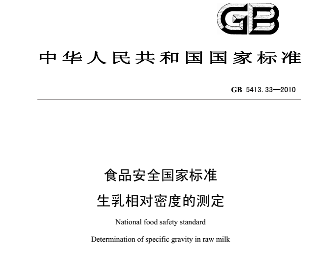 食品安全国家标准 GB 5413.33-2010中规定了生乳相对密度的测定方法。其原理是:使用密度计检测试样,根据读数经查表可得相对密度的结果。一、仪器设备: 1、密度计: 20℃/4℃; 2、玻璃圆筒或200mL~250mL量筒:圆筒高…