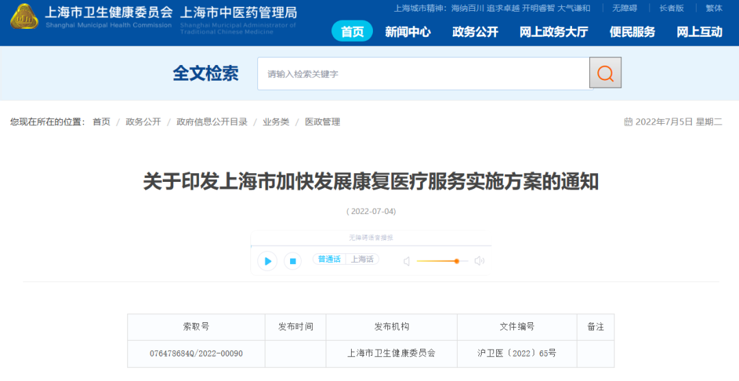 最新!七部门联合印发,提升上海康复医疗发展能力(附设备清单)