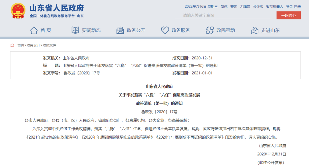 2021年初,山东省政府发布《关于印发落实“六稳”“六保”促进高质量发展政策清单(第一批)的通知》,下称《通知》。其中提到的“六稳”是工作,“六保”是任务。“六稳”指的是稳就业、稳金融、稳外贸、稳外资、稳投资、稳预期,涵盖了我国目前经济生活的主要方面。“六…