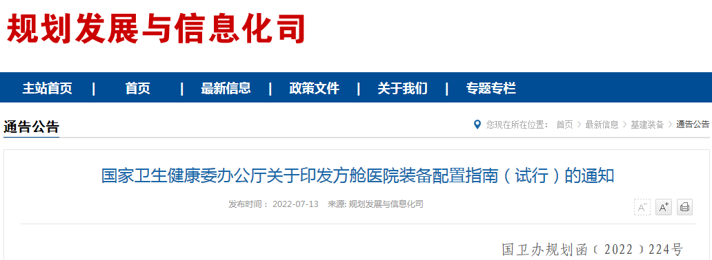 Part.01国家发文新一轮设备采购潮爆发昨日(7月13日),国家卫健委发布《国家卫生健康委办公厅关于印发方舱医院装备配置指南(试行)的通知》(以下简称指南)。该《指南》适用于指导各地开展方舱医院装备配置工作,明确了相关装备配置的基本原则,提出了相关装备采购安装…