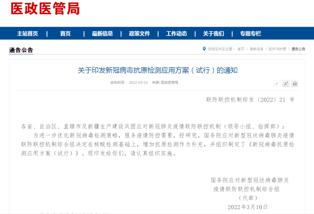 3月11日,国家卫生健康委员会官网发布《关于印发新冠病毒抗原检测应用方案(试行)的通知》(简称“通知”),表示决定在核酸检测基础上,增加抗原检测作为补充,并组织制定了《新冠病毒抗原检测应用方案(试行)》(简称“试行方案”)。此次试行方案明确了自测抗原应用…