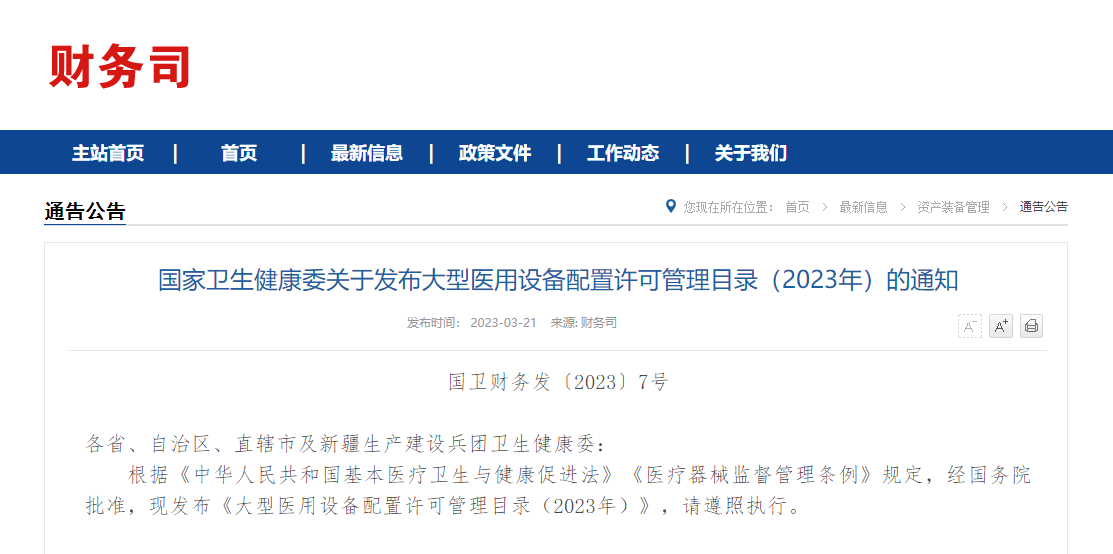 3月21日,国家卫健委官网发布《大型医用设备配置许可管理目录(2023年)》,时隔五年,大型医用设备配置许可管理目录内容又一次迎来重要调整!大型医用设备配置许可管理目录(2023年)甲类管理目录(国家卫生健康委负责配置管理)一、重离子质子放射治疗系统二、高端放射…