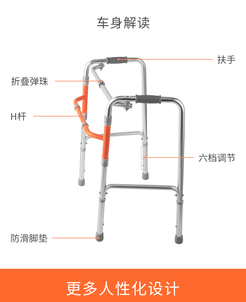 鱼跃助行器YU710A家用四脚拐杖老人助行可折叠调节高度助行器