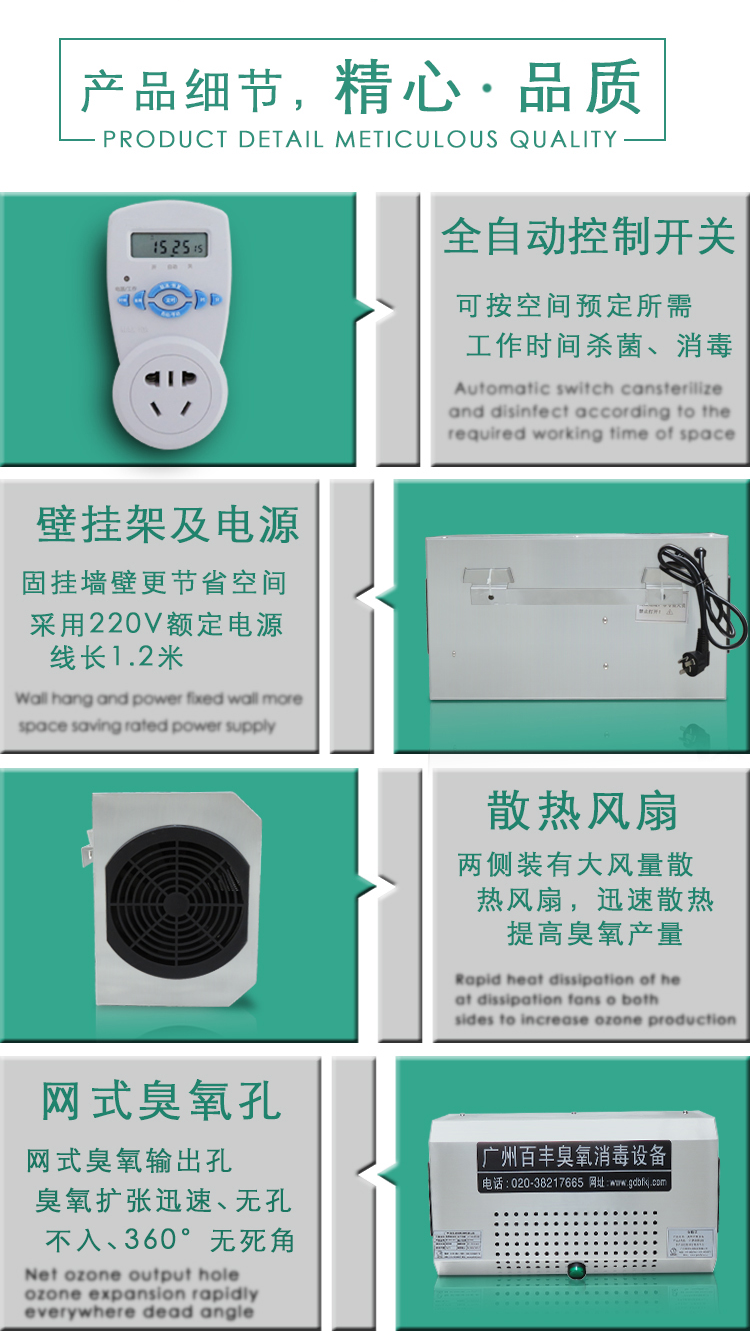 臭氧产量:15g/h,消毒空间150-420m^3