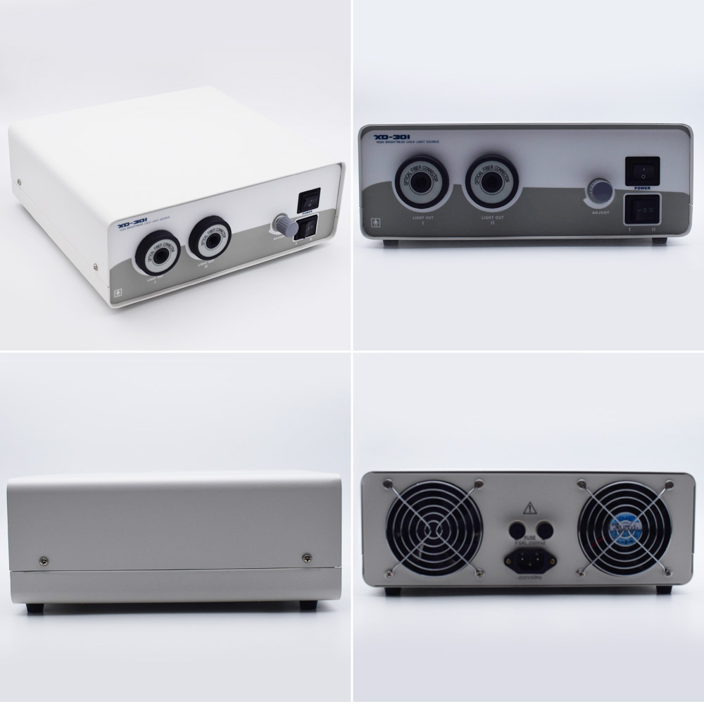 本产品为双孔双灯250w卤素冷光源。主要由光源部分、电源部分、散热部分、机箱部分组成 。