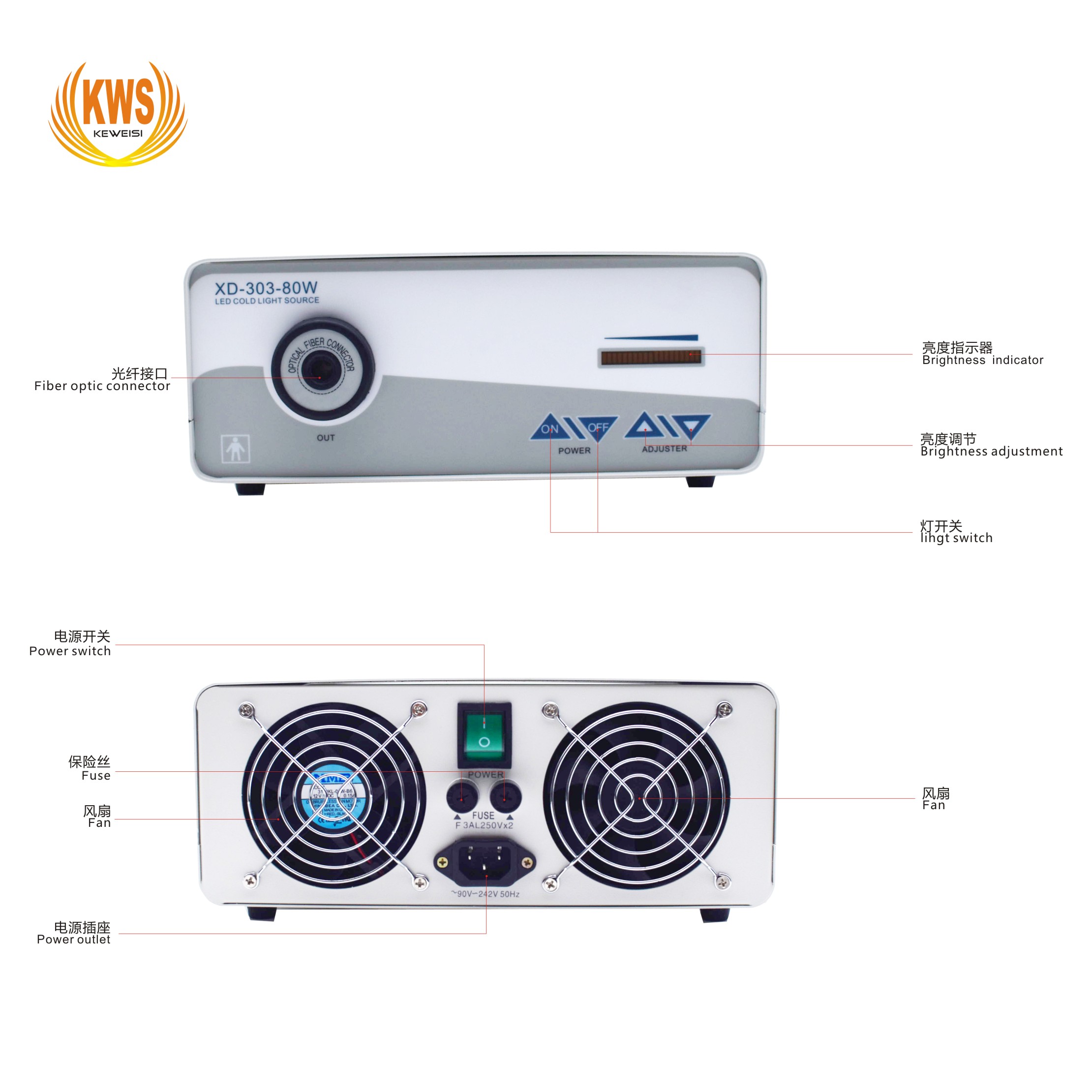选用光效高、照度高的80w led做光源,其照度大于250w卤素冷光源的照度。主要由光源部分、散热部分、电源部分、机箱部分等组成。