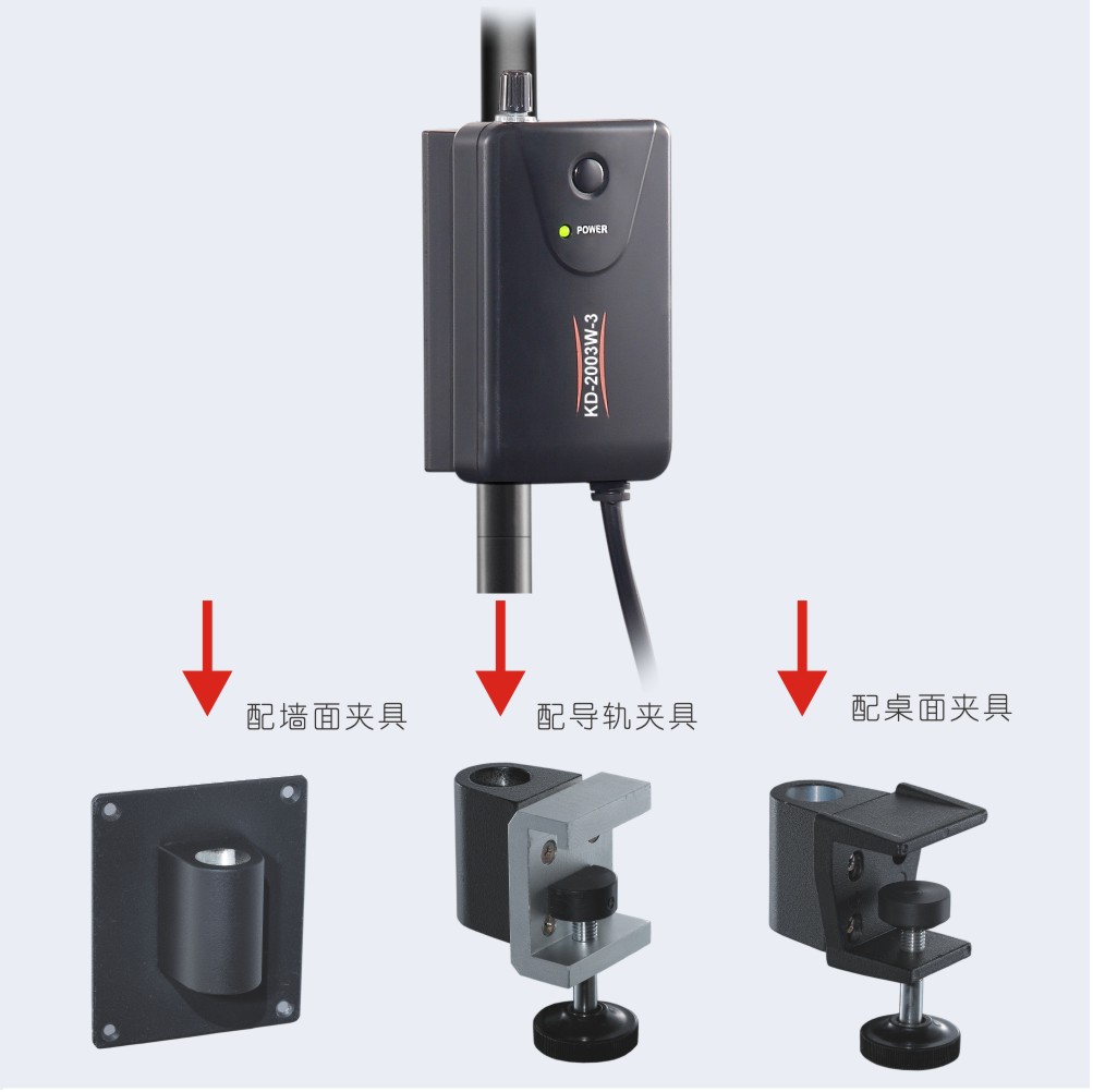 3.软管弯曲,多角度照明,可与落地架、台面、导轨、挂壁夹具快速配接。