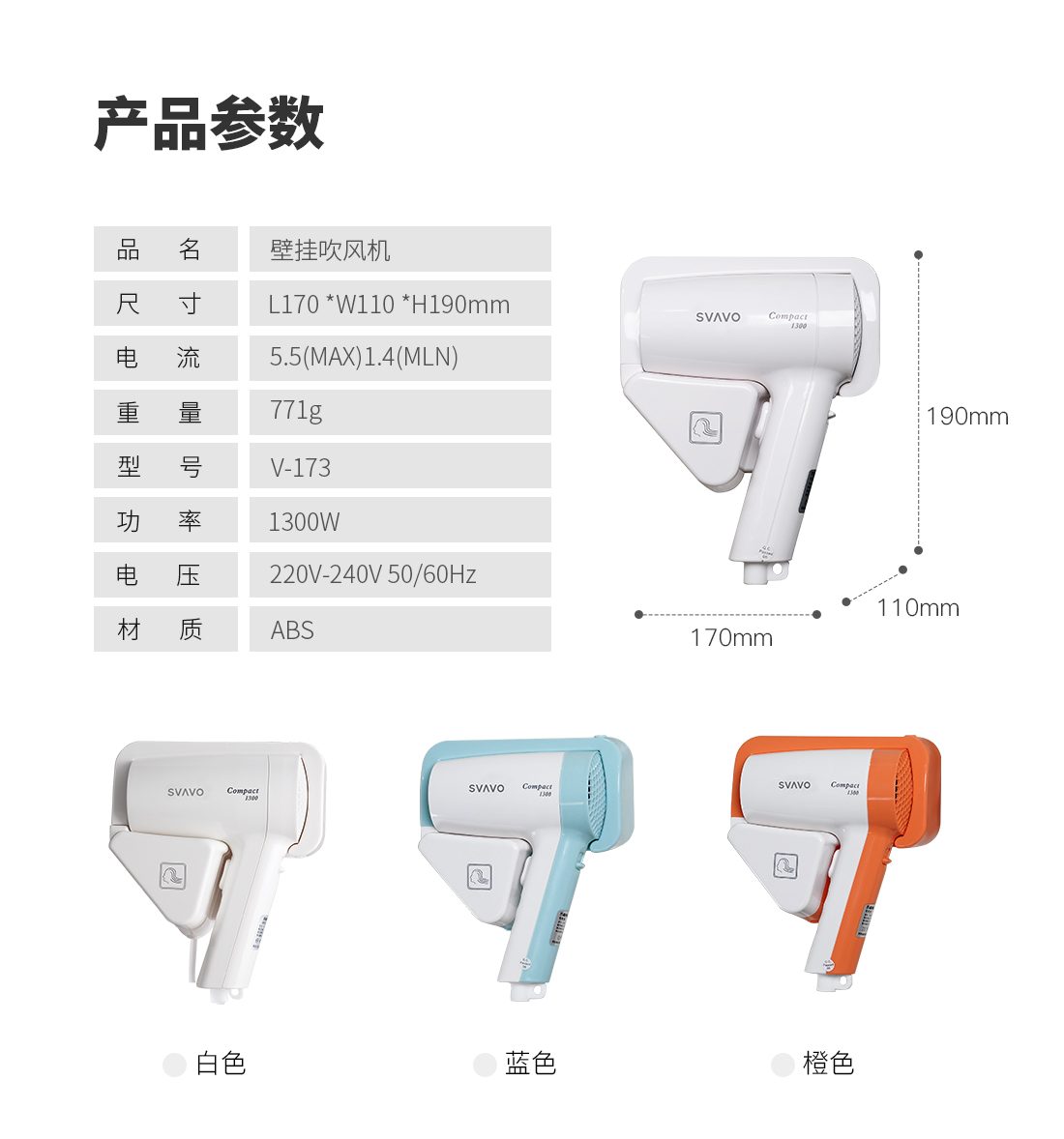 瑞沃吹风机V-173(带插座)