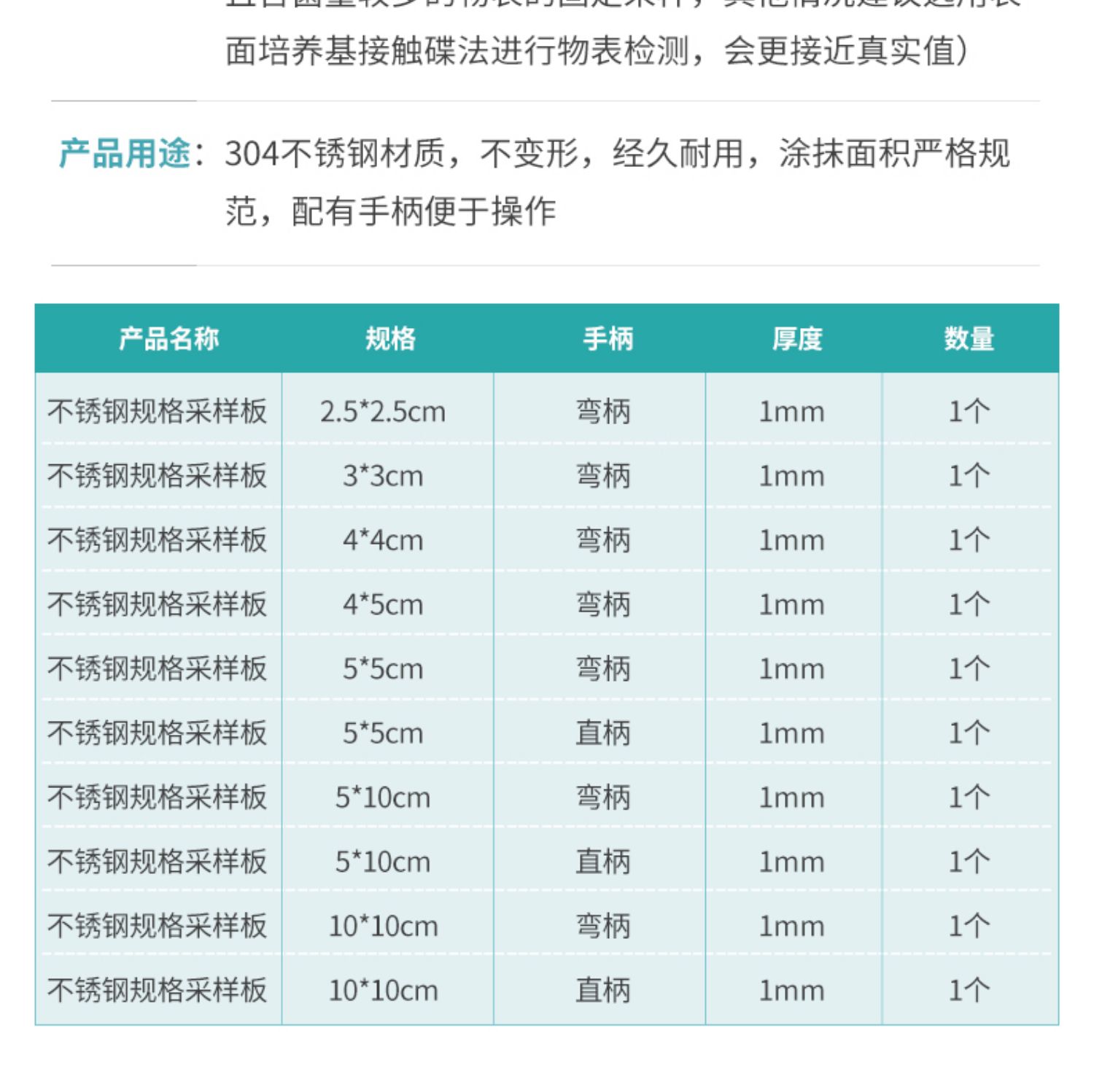比克曼生物 不锈钢采样板规格板5*10cm弯(独立装)