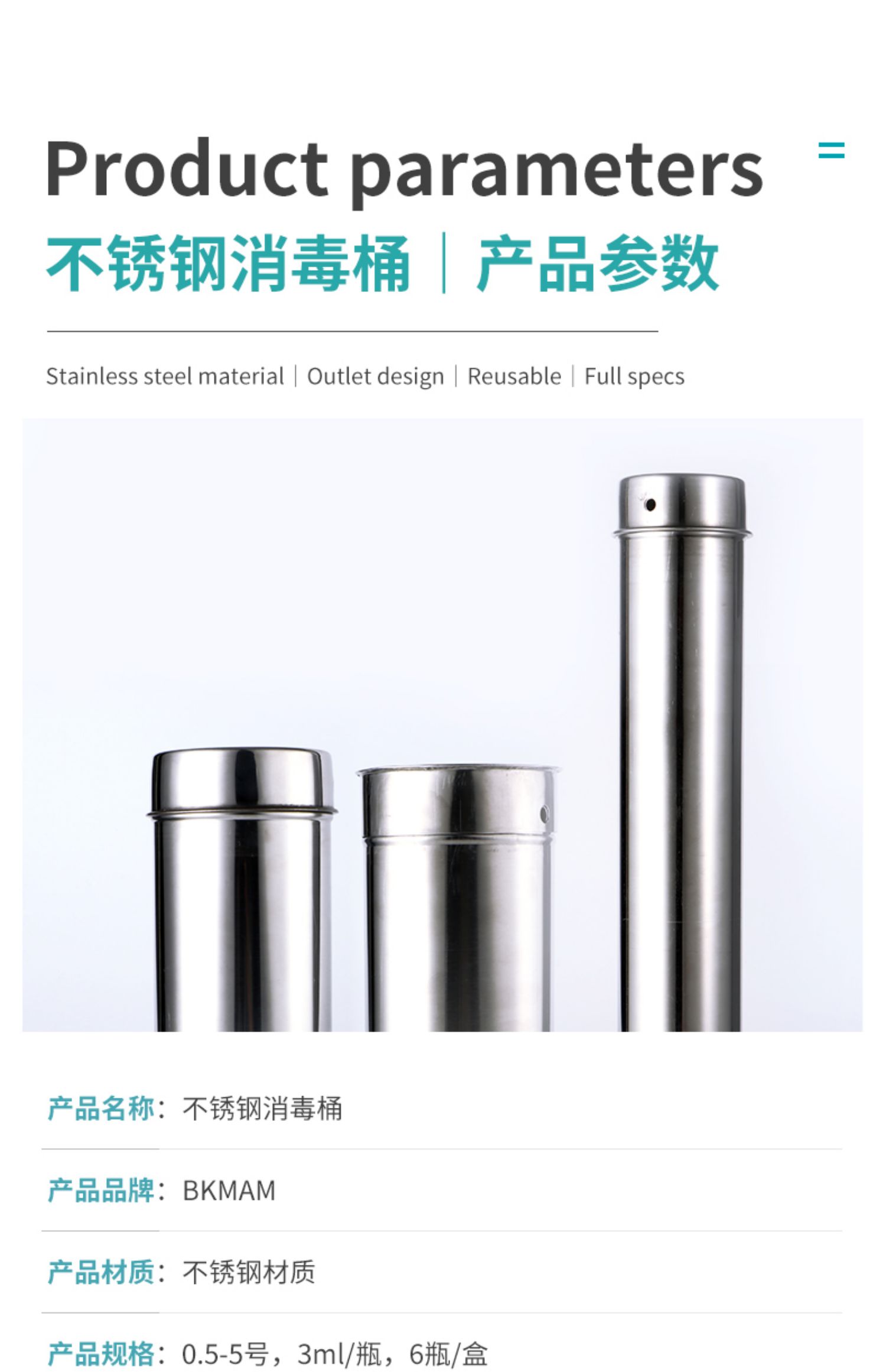 BKMAM 不锈钢消毒桶8.5*22cm(手敲式)