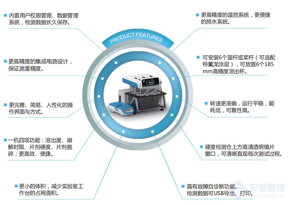7、一机四项功能:溶出度、崩解时限、片剂硬度、片剂脆碎;更高效、便捷。